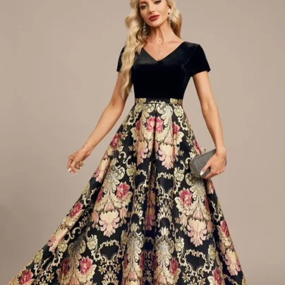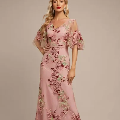Cette robe longue est réalisée dans une dentelle florale délicate avec des finitions soignées. Doublée d’un tissu léger et confortable, elle laisse entrevoir la peau avec élégance grâce à ses détails en transparence. Sa taille marquée et son col en V valorisent la silhouette. Un choix romantique et sophistiqué pour les cérémonies ou les dîners élégants.